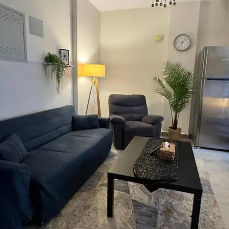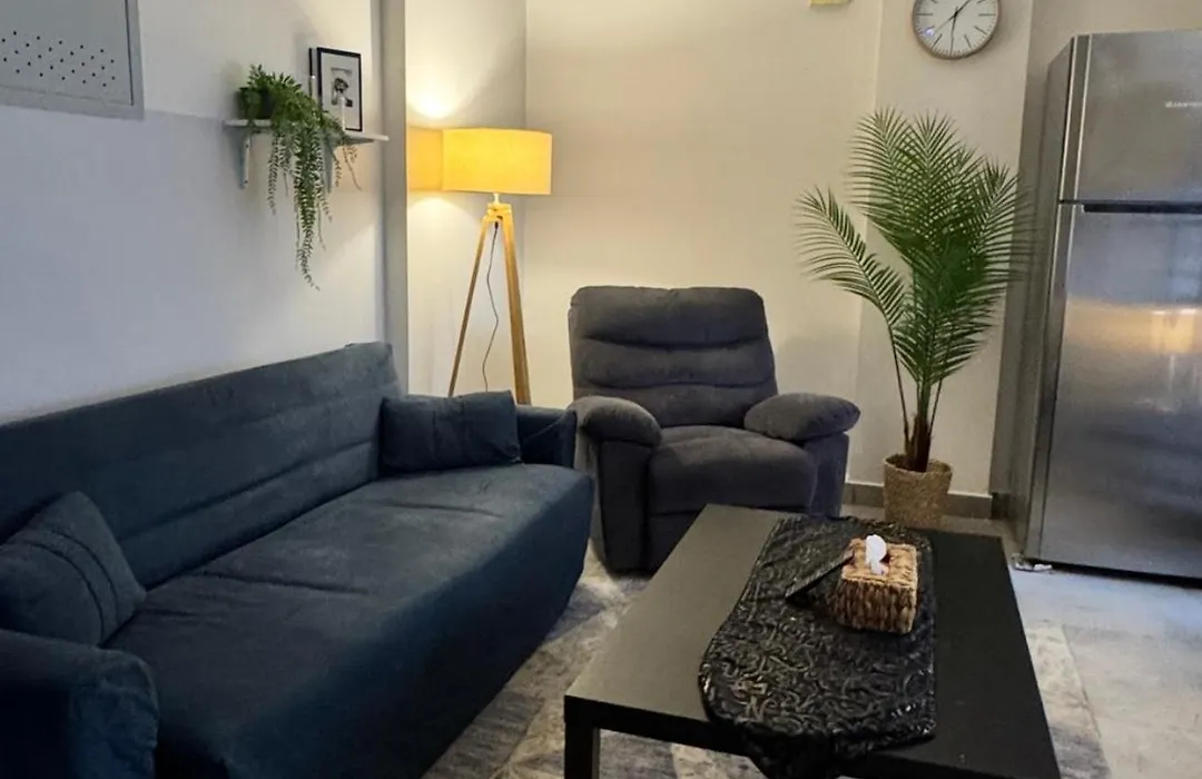 El apartamento dispone de una pequeña cocina con horno de microondas, hervidor eléctrico y utensilios de cocina, además de minibar. Este apartamento de 45 m² ofrece alojamiento a solo 35 km del aeropuerto El internacional del Cairo.